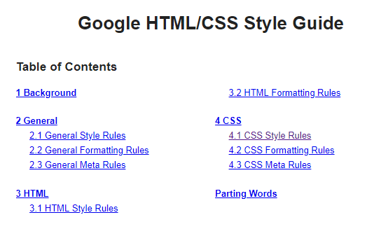 구글의 구글 스타일가이드는 크게 개요, 공통, HTML, CSS로 나뉘어져있고, 우선 CSS부터 정리해 볼 생각이다.