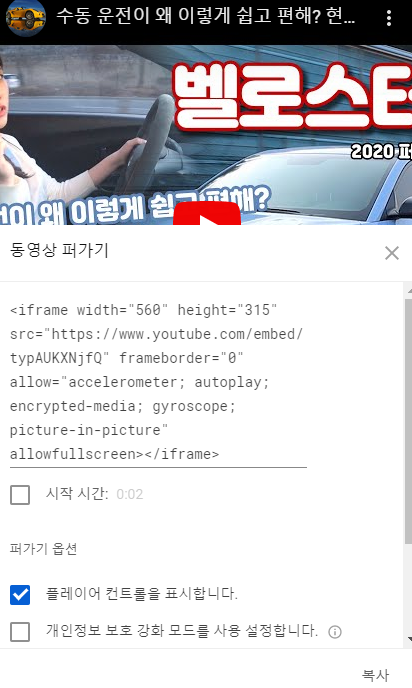 웹페이지 또는 개인 블로그 내에 Youtube영상을 삽입해야하는 경우가 있다. Youtube에서는 자체적으로 동영상을 공유하는 기능을 제공하고 있다.