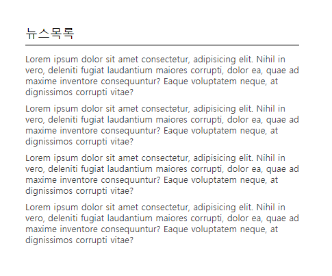 먼저 아래와 같이 HTML과 CSS 코드를 작성한다. 쉽게 볼 수 있는 최신 글 목록 UI이다.
