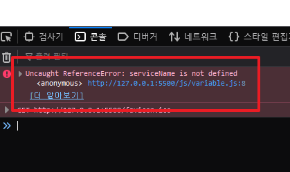 let 변수선언을 하면 block내의 코드를 외부에서 인식하지 않기 때문에 serviceName변수를 찾을 수 없다는 오류를 뱉는다.