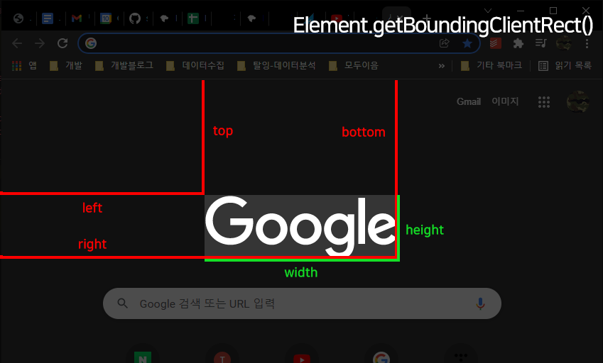 getBoundingClientRect 메소드는 Element Object에 포함되어 있다.