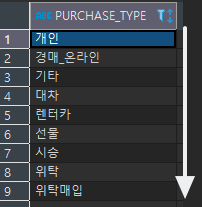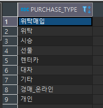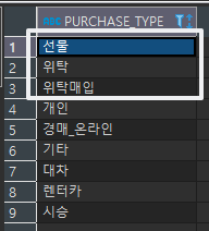 위와 같이 CASE문으로 임의지정 해준 뒤 다시 PURCHASE_TYPE으로 정렬을 해줄 수 있다.